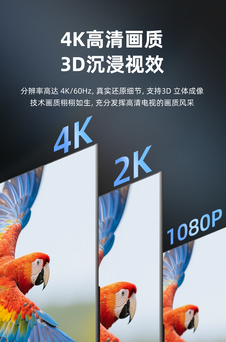 2.支持分辨率:3840*2160/60HZ 向下兼容