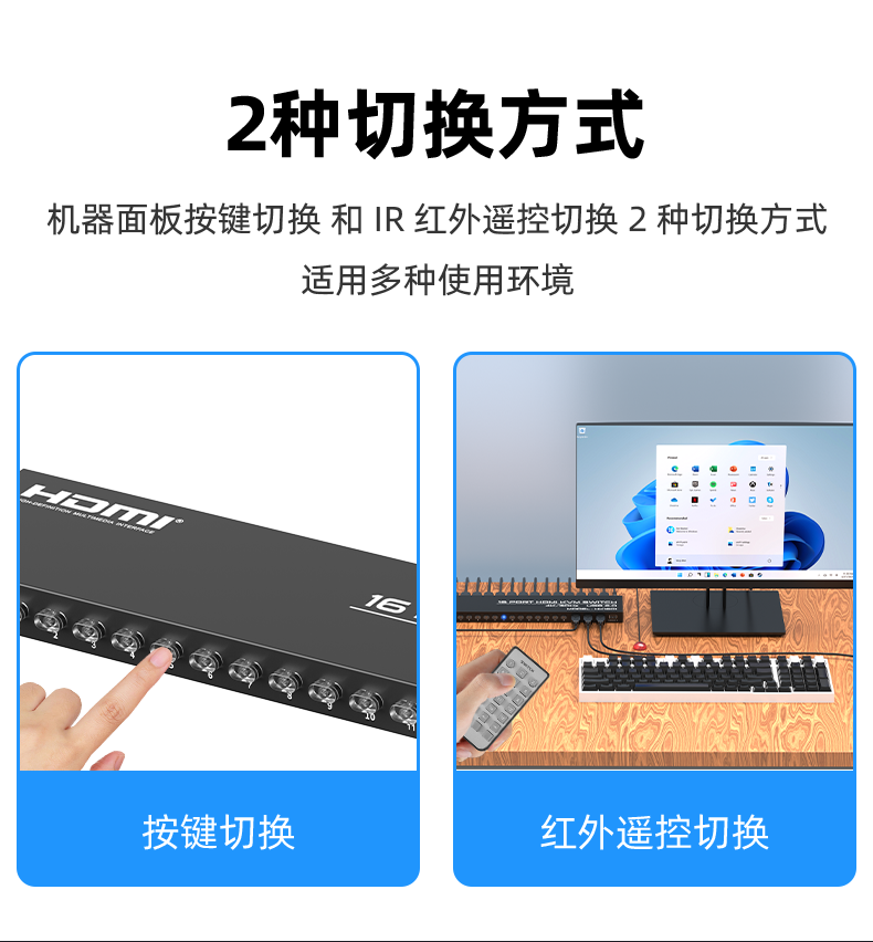 4.切換方式:面板按鍵切換/紅外遙控切換