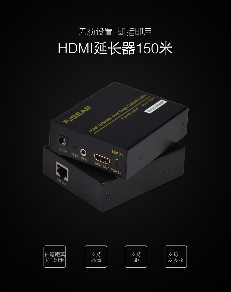 4.傳輸距離可達(dá)150米,1080p 60MHZ