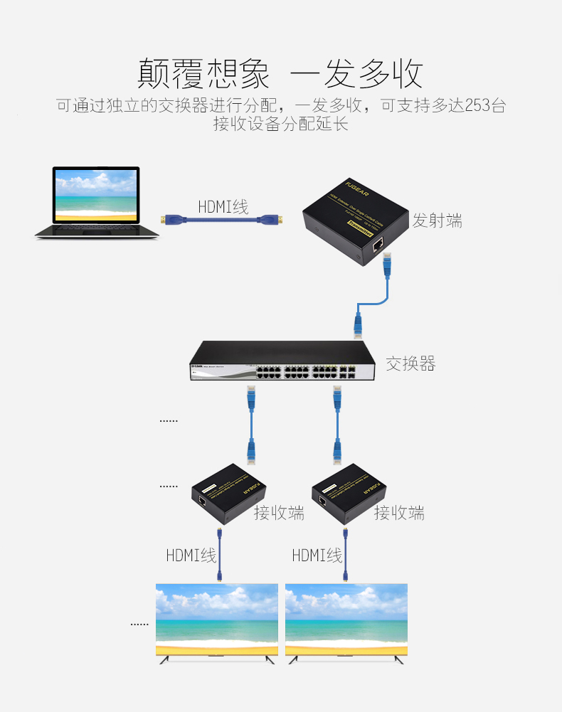 2.采用CAT-5E/6網(wǎng)線代替HDMI線來實(shí)現(xiàn)遠(yuǎn)距離傳輸